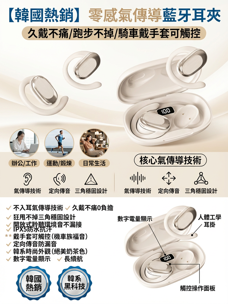 【韓國熱銷】零感氣傳導藍牙耳夾(久戴不痛/跑步不掉/騎車戴手套可觸控)